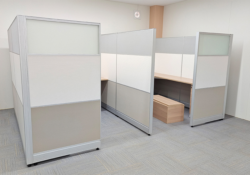 Het 2-persoons cubicle bureau kan op maat worden besteld in verschillende maten, afwerkingen en u kunt kiezen uit meerdere ladesets voor opbergruimte.