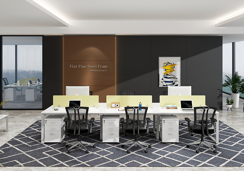 Creëer een collaboratieve maar privé werkomgeving met 4 Person Office Workstation Open Office met opslag. Combineer vier werkgebieden met gemeenschappelijke middenpaneelwanden. Het 4 Person Workstation aan elke kant met 300H-scheidingswanden. Thermisch gefuseerde laminaatwerkbladen bieden superieure kras- en vlekbestendigheid, met kabelbeheer om snoeren georganiseerd te houden. Inclusief 4 bijpassende 3-laden mobiele archiefkasten voor opslag met volledig uitschuifbare kogellagers op alle laden voor gemakkelijke toegang. Commercieel kantoormeubilair ontworpen voor snelle montage.