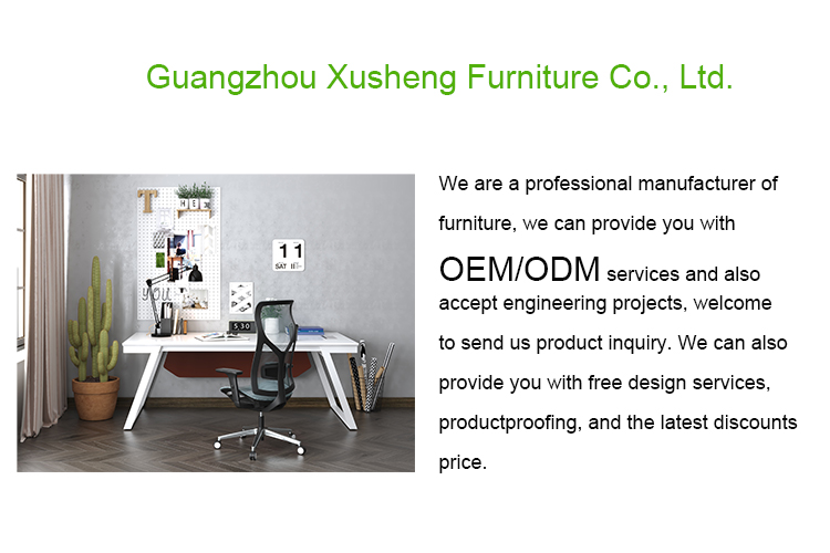 Algemeen commercieel kantoormeubilair is alles-in-één. Voordat u koopt, moet u de grootte van uw kantoor opmeten, of u het kunt tillen en neerzetten. Het kantoormeubilair geproduceerd door Xusheng Furniture zal niet zo'n probleem hebben, omdat het gedemonteerd en als geheel gemonteerd kan worden. Het is niet alleen uitgerust met installatietekeningen, maar biedt kopers ook gedetailleerde video-uitleg over de installatie van het kantoorbureau. Het bespaart opslagruimte nadat het product is verwijderd en het is ook gemakkelijk te installeren en te vervoeren.