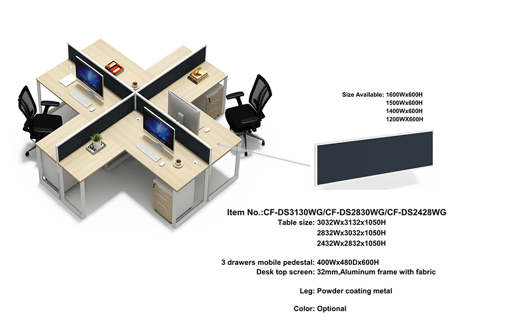 The desk is equipped with a modesty panel, which can protect privacy very well meet the needs of staff of all ages.