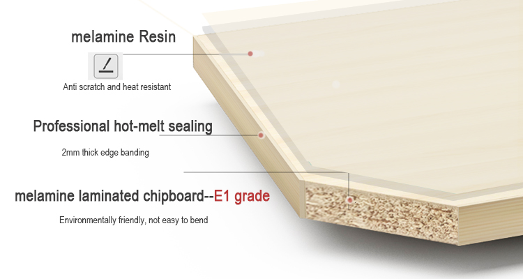 | Material | High quality anti scratch&heat resistant melamine laminated chipboard -- E1 grade | |